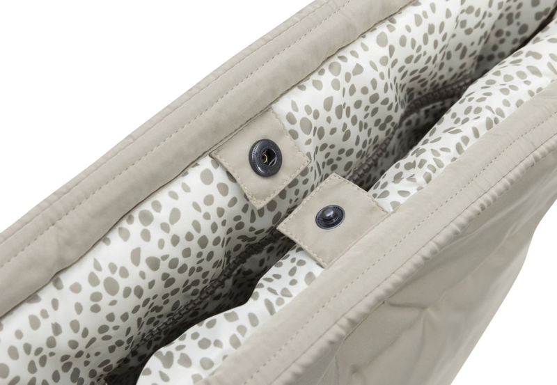 Deze tas is ideaal als je op pad gaat met jouw kleintje. Natuurlijk kun je de tas ook gebruiken voor jezelf, voor het sporten of als schooltas. De tas is gemaakt van 100% gerecycled polyester. De binnenkant heeft een schattig stippenprintje. Daarnaast heb je in de binnenkant nog 2 handige opbergvakjes en wordt er standaard een verschoonmatje bijgeleverd. De tas sluit met een knoopje en er zit een rits in het binnenvakje. De shopper heeft extra lange hengsels zodat je deze niet alleen op je schouder kan dragen, maar ook cross-body of om de kinderwagen.