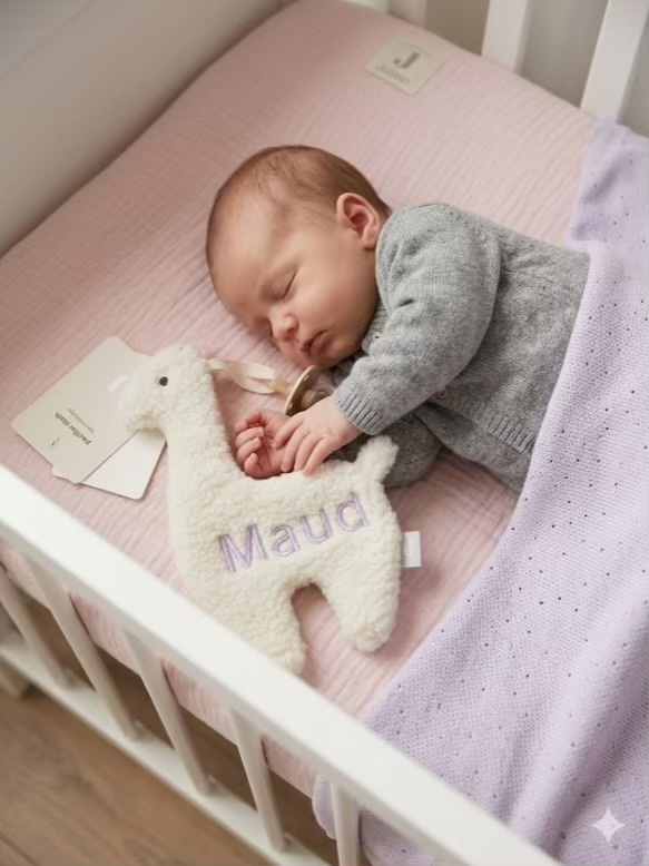 Terug naar overzichtLeuk speendoekje met een lama in de kleur off white gemaakt van teddystof.